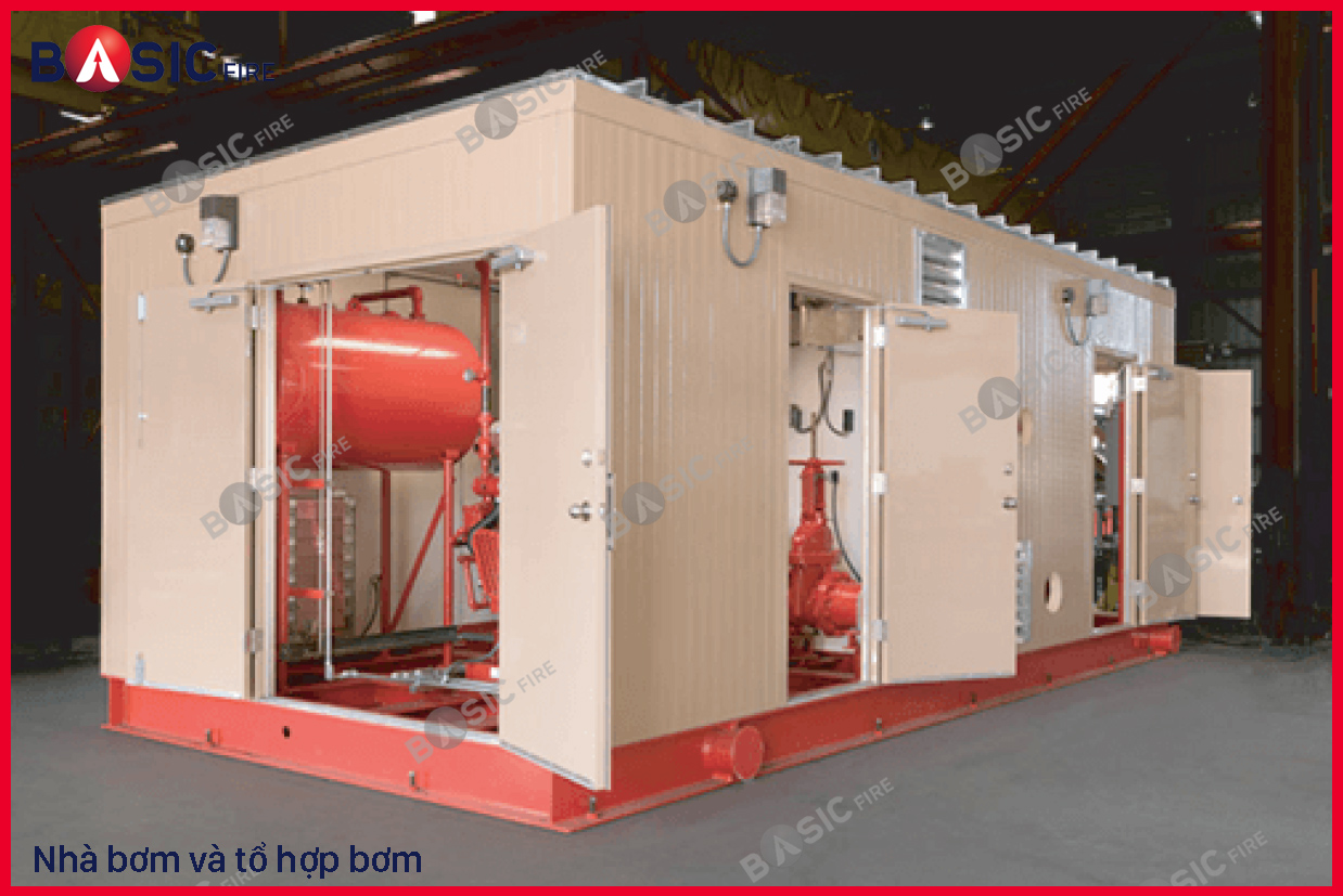 Một số công trình có phòng bơm nằm độc lập thì việc lắp đặt tổ hợp bơm trong nhà bơm tại nhà máy của Basic Fire sẽ đảm bảo tính đồng bộ cao.